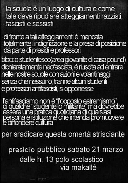 Studenti e insegnanti percorrono il secondo passo della campagna di chiusura di Casa Pound